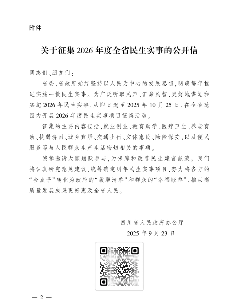 2025-09关于征集2026年全省民生实事的公开信